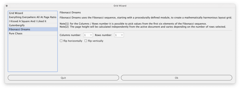 Fibonacci Dreams uses the Fibonacci sequence, starting with a procedurally defined module based on the page size, to create a mathematically harmonious layout grid.